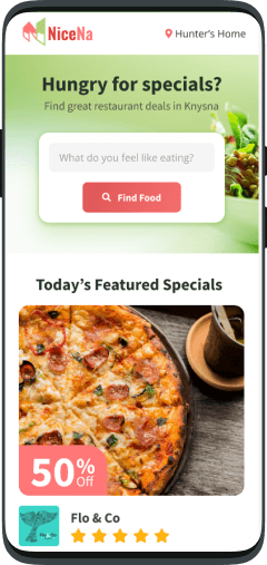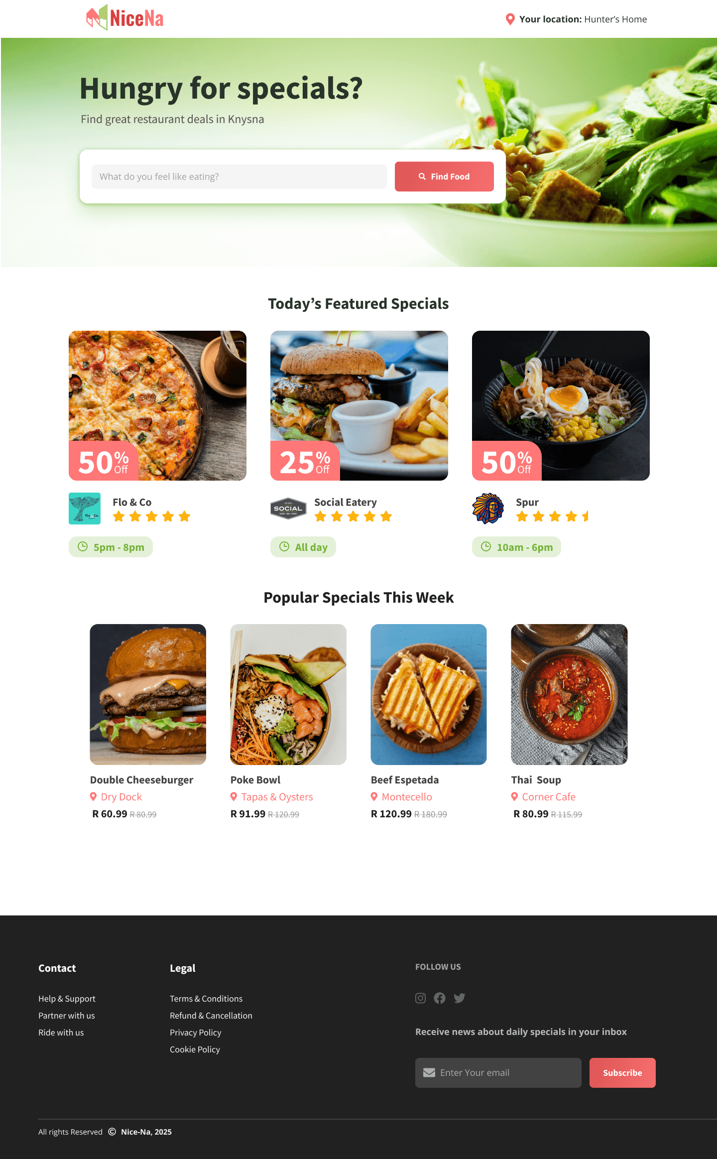 NiceNa is a user-centric platform that consolidates and displays daily specials from restaurants in the Knysna area.